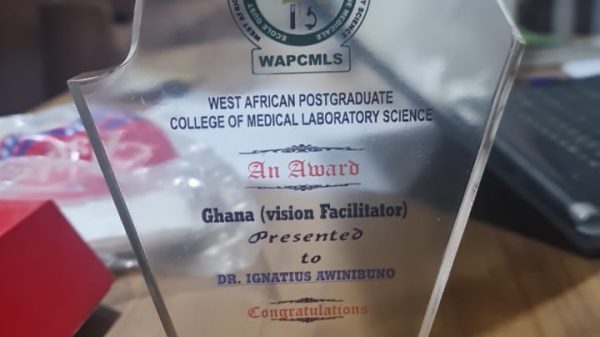 Dr. Ignatius Awinibuno honoured at 4th WAPCMLS Regional Conference in Cotonou, Benin At the recently held 4th Regional Conference of the West African Postgraduate...