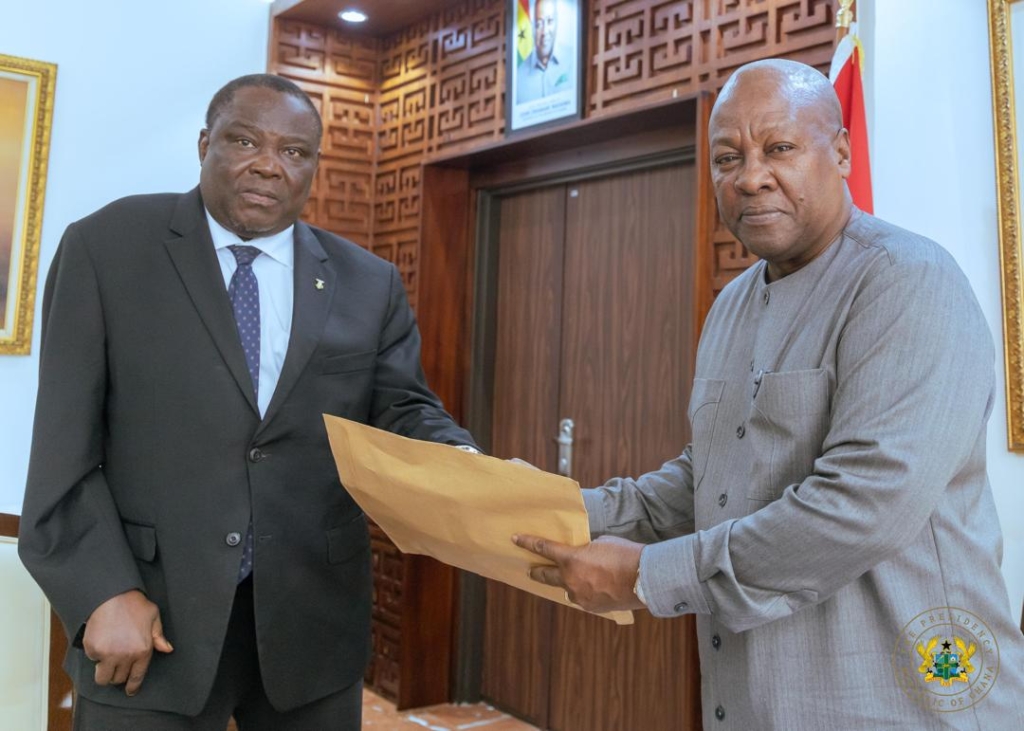 The Chairman of the Article 146 Committee of Inquiry, Justice Gabriel Scott Pwamang, has officially presented the Committee’s first report to President John Mahama on petitions seeking the removal of Chief Justice Gertrude Torkornoo.