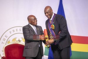 Herbert Mensah receiving the National Honours and Awards 2024, from President Akufo-Addo