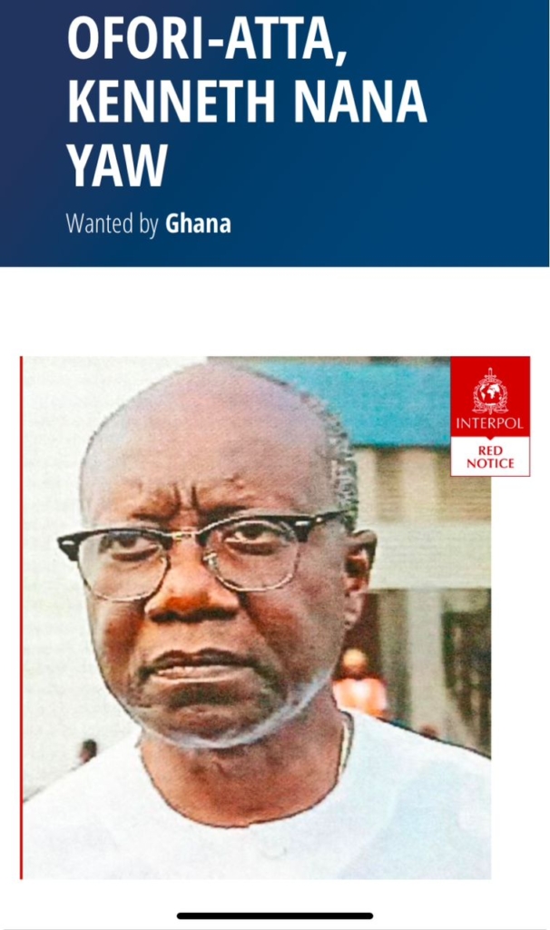 Ofori-Atta listed on INTERPOL Red Notice